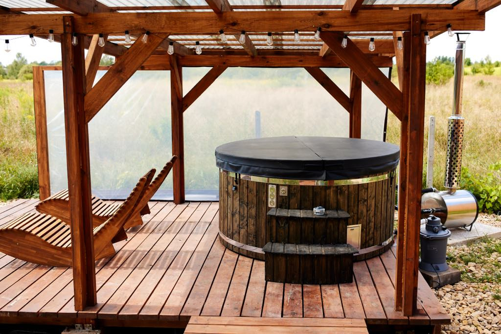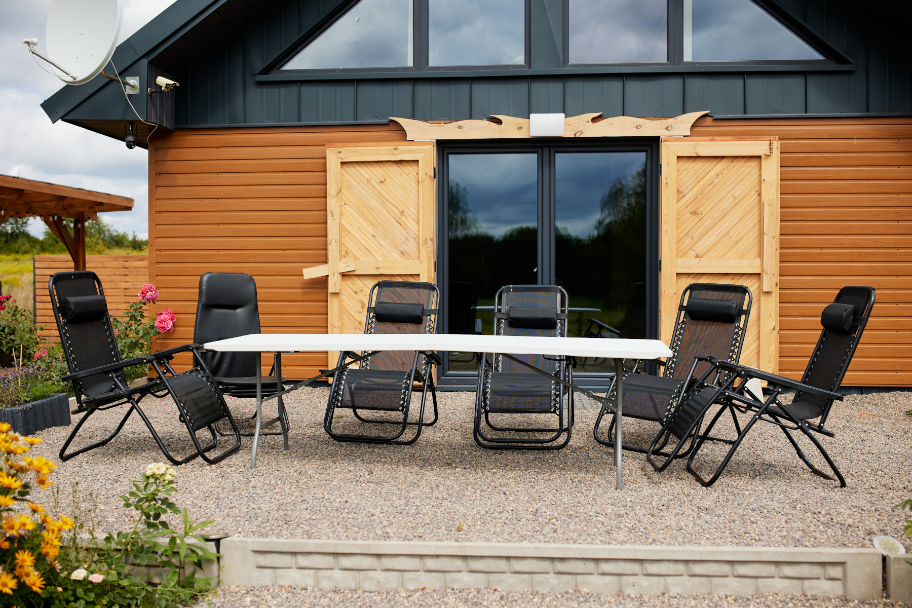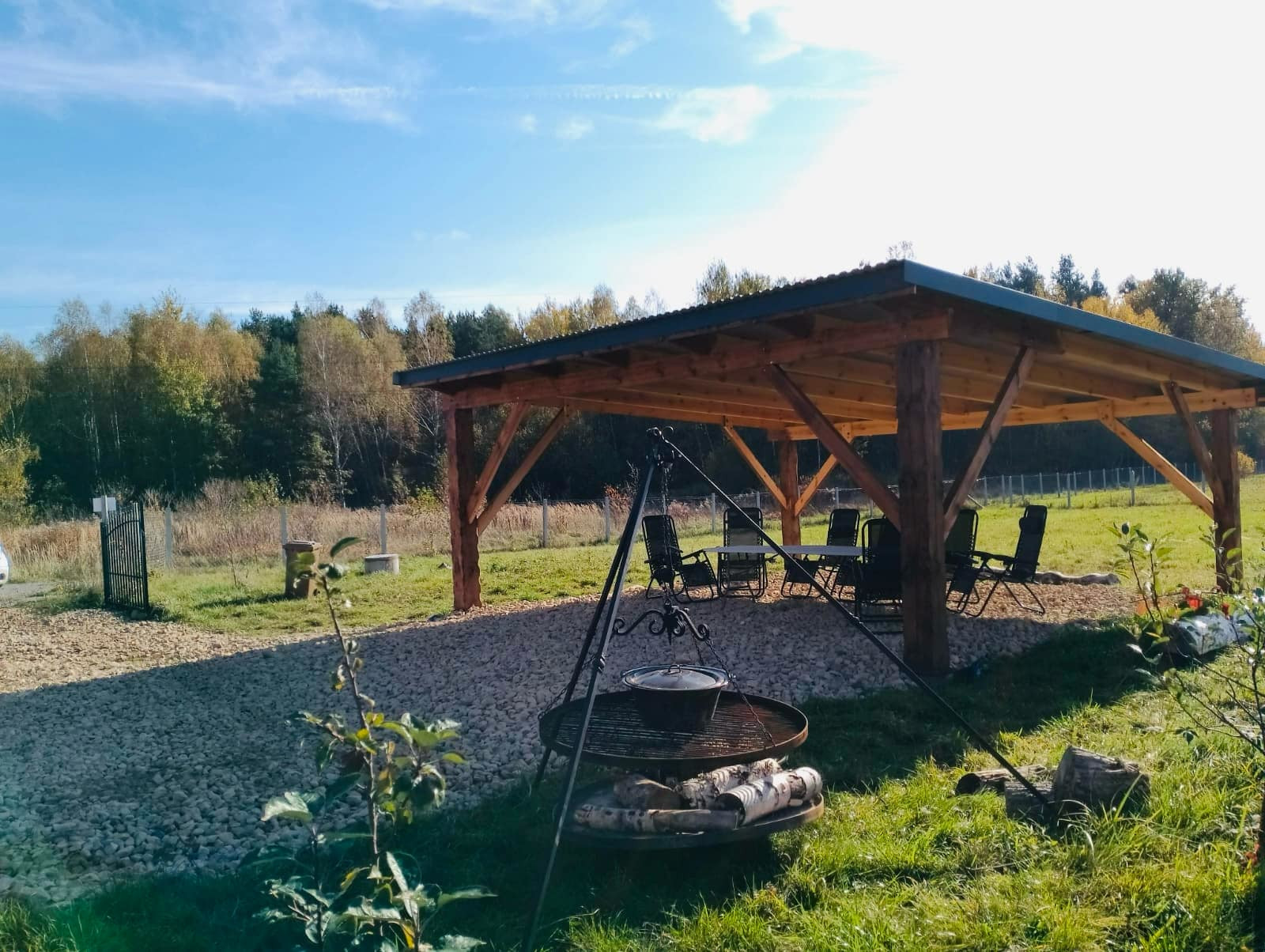 Do dyspozycji gości jest WiFi , parking, leżaki, wiata i część grillowa, pomost z widokiem na staw, zadaszona altanka z kompletem mebli ogrodowych i biokominkiem, spory teren do praktyki jogi, uważności, gier terenowych, spacerów a także obserwacji natury. Bezpośrednio przed domem jest taras słoneczny. Z salonu jest wyjście na drugi taras, gdzie znajduje się 8 osobowa ruska bania ogrzewana piecem.
