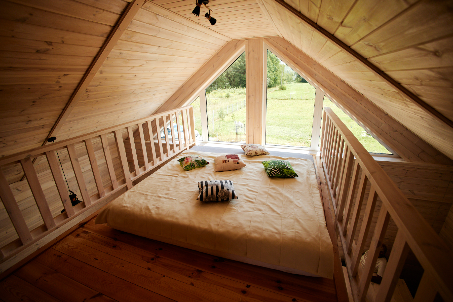 kokosowy materac 200cm*200cm z przeszkloną ścianą i niezwykłym widokiem na okoliczne tereny,